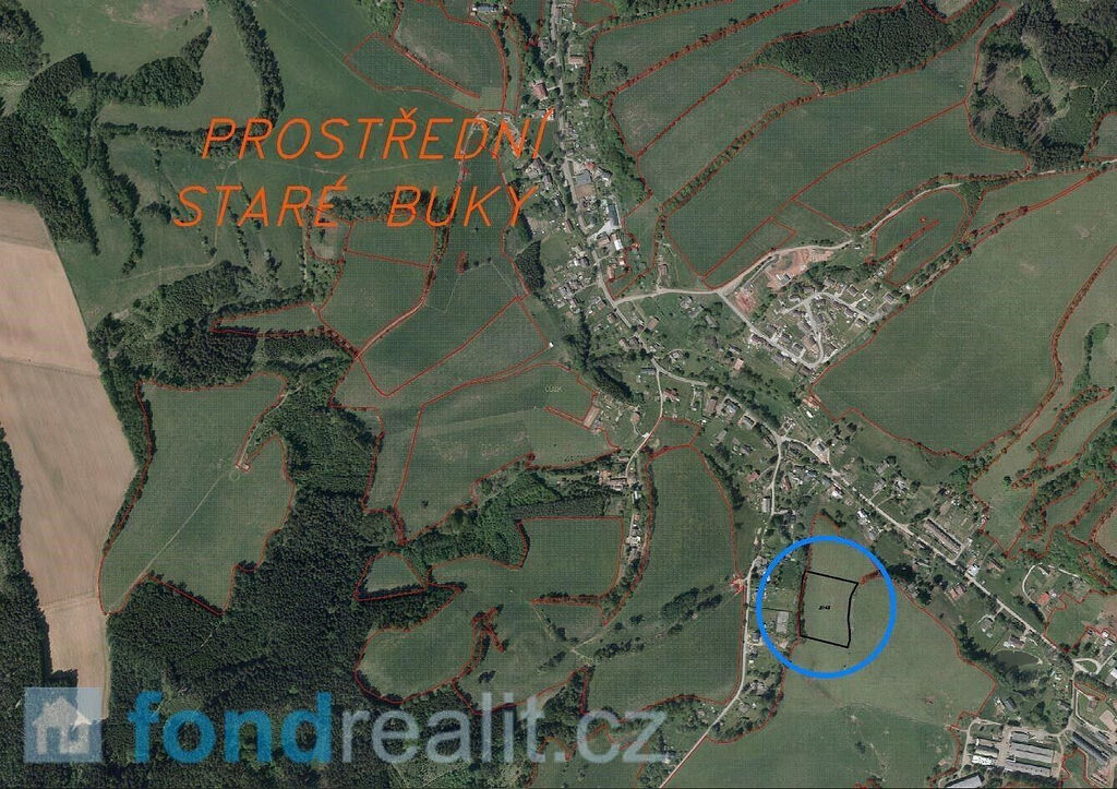 Předmětem prodeje je pozemek o výměře 10 957 m² v obci Prostřední Staré Buky. Pěkný pozemek se nachází ve střední části obce nedaleko Žďárského potoka. V katastru nemovitostí je veden jako orná půda.