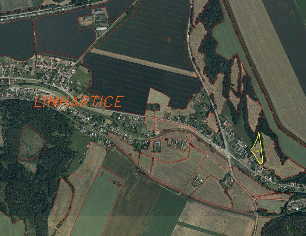 Předmětem prodeje je pozemek o výměře 7 394 m² u obce Linhartice. V katastru nemovitostí je veden jako trvalý travní porost. Pozemek navazuje na zastavitelnou plochu, což může do budoucna změnit jeho využití.