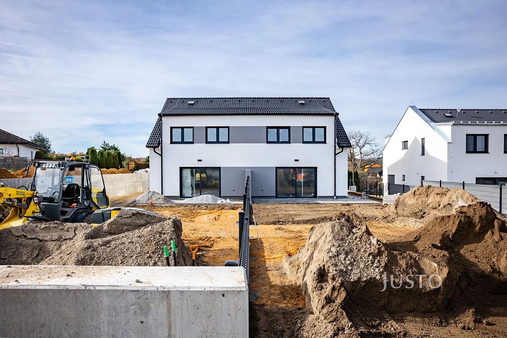 Dispozice 5+kk s užitnou plochou 121 m² nabízí velkorysý prostor, který si zamilujete hned při první prohlídce. Součástí každé jednotky je navíc vlastní zahrada o výměře cca 285 m², dvě parkovací stání, terasa, vlastní tepelné čerpadlo značky Panasonic, nezámrzný venkovní kohout na vodu, příprava na venkovní žaluzie (bez lamel), hotový plot a mnoho dalšího. Zahrada bude předána srovnaná a s navezenou ornicí, připravená k osetí trávníkem. Praktickým benefitem je také dostatečně široký přístup na pozemek kolem jednotky, včetně hotového chodníku.