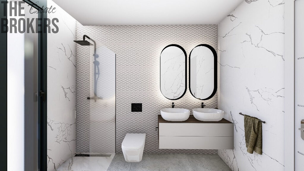 Každá vila má moderní, otevřený koncept rozložený do dvou podlaží a na střeše je nádherné solárium. Interiér nabízí 3 ložnice a 3 koupelny.