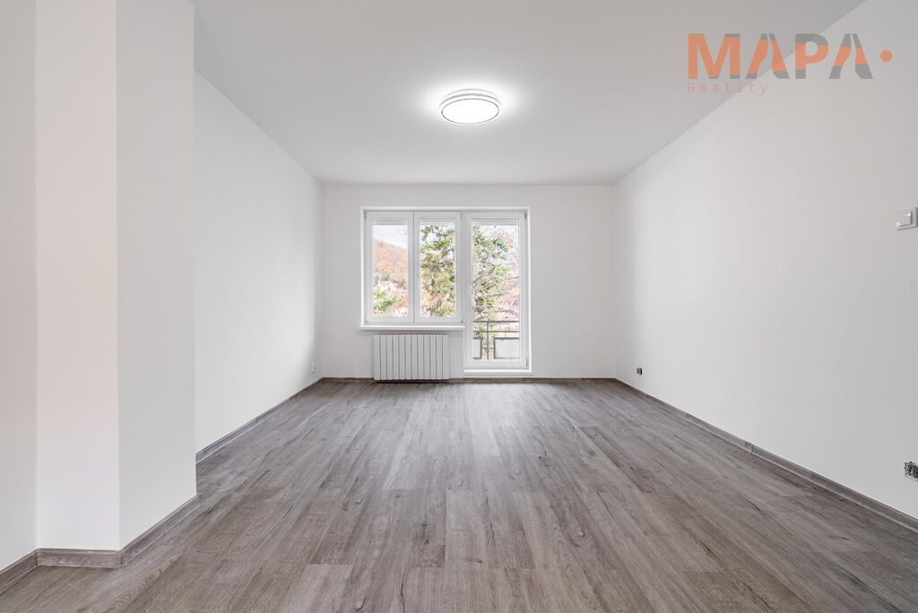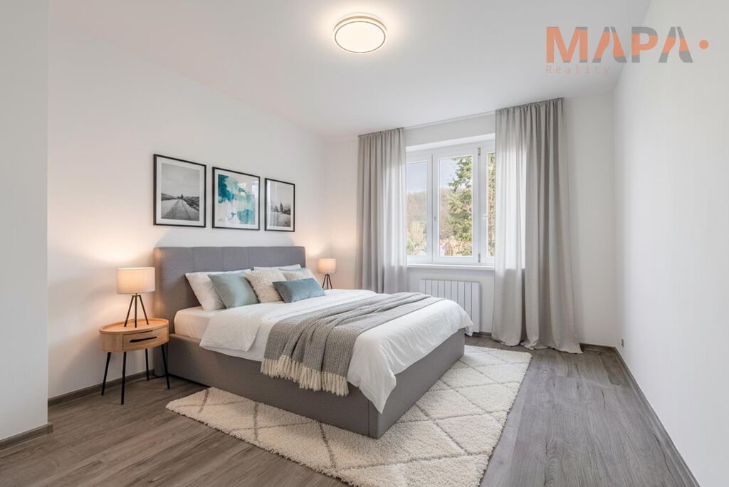 Byt právě prošel kompletní rekonstrukcí (2025) nové podlahy, dveře, elektroinstalace, kuchyň na míru se spotřebiči, moderní koupelna s vanou a samostatné WC.