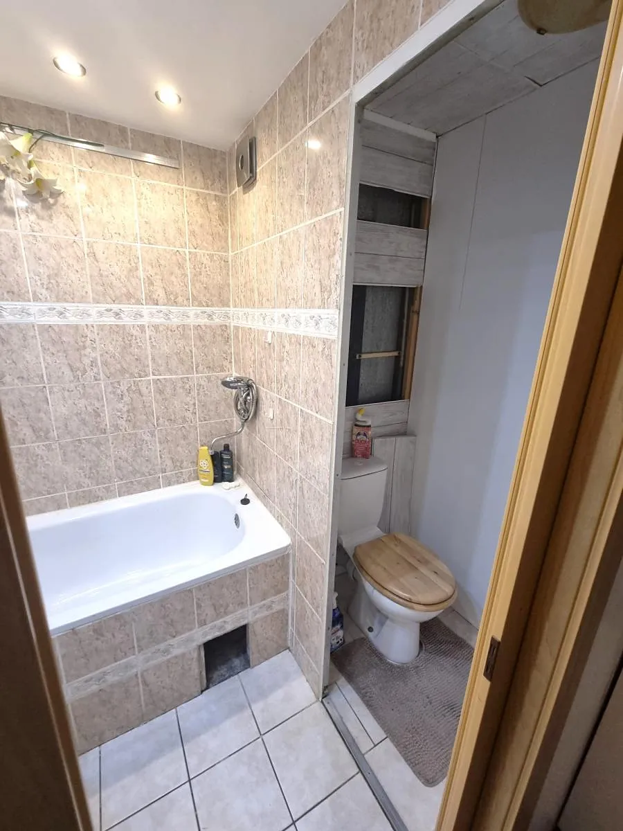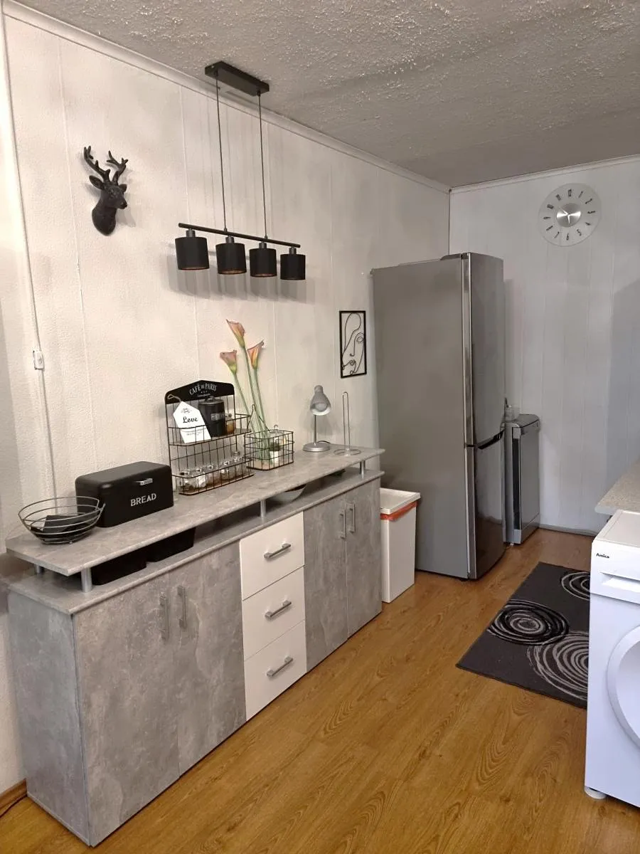 Byt je zařízený a připraven k okamžitému nastěhování. Je zde menší kuchyňská linka s elektrickým sporákem.. V koupelně je vana obložená moderními dlaždicemi a oddělena příčkou od toalety.