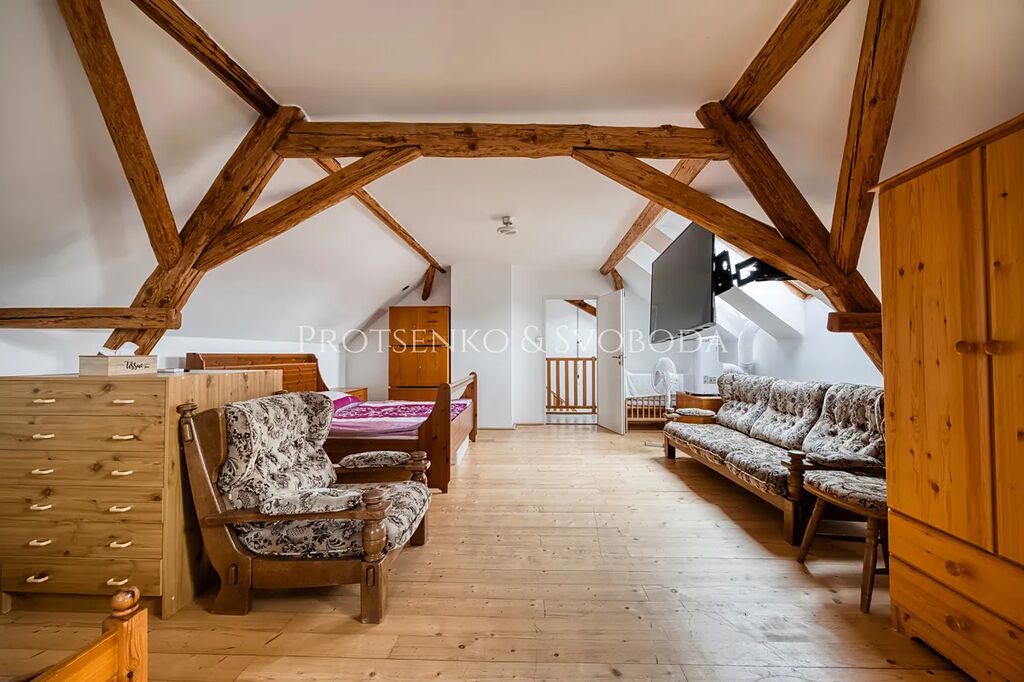 • Menší dům s dílnou a nedokončeným bytem, který nabízí prostor pro další bytovou jednotku či ateliér