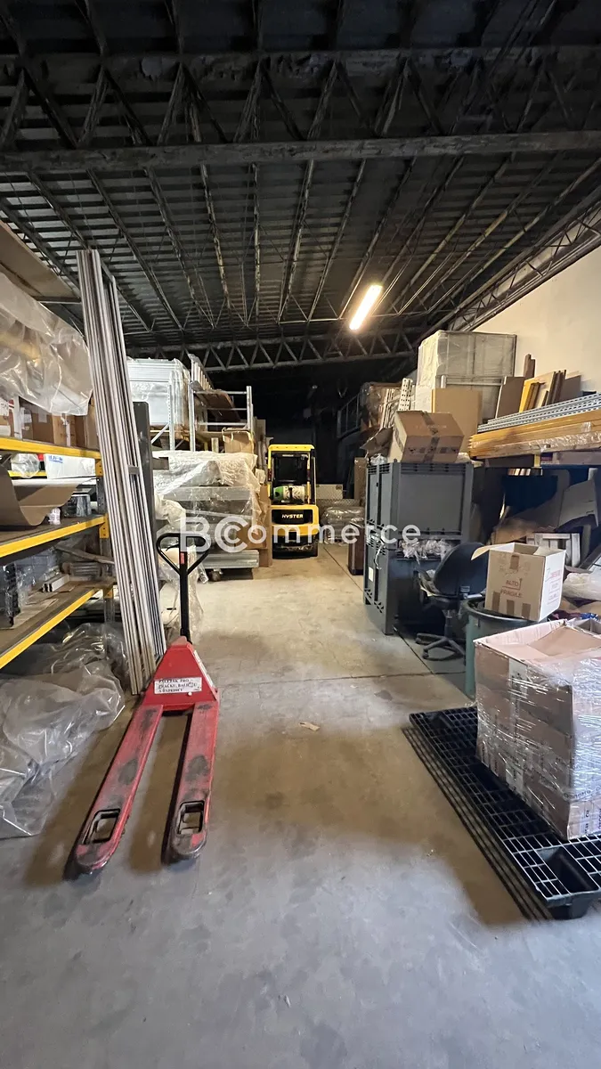 Podlaha je betonová s rovným povrchem pro snadnou manipulaci s paletovým nebo vysokozdvižným vozíkem.