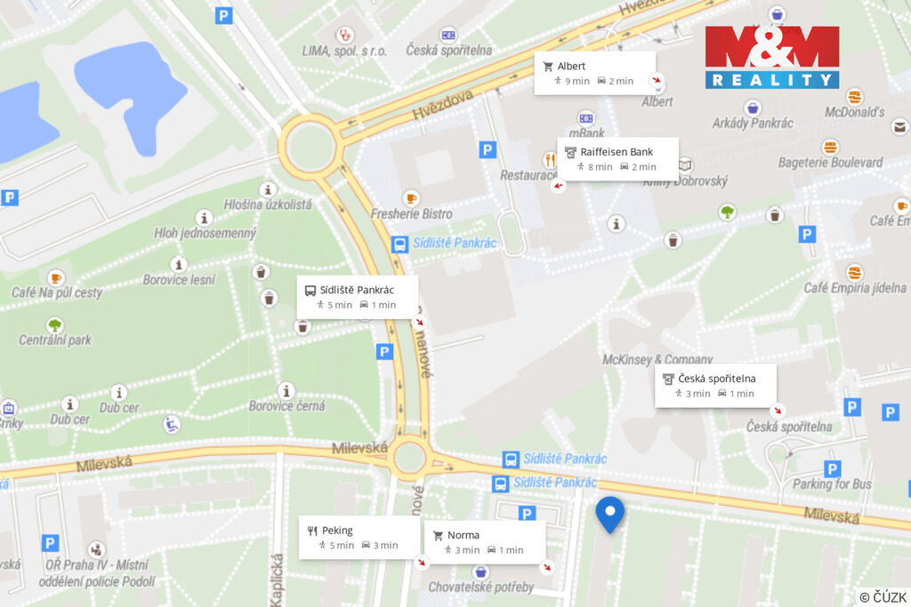 V okolí naleznete obchody, restaurace, a zastávky MHD, které zajišťují rychlé spojení do ostatních částí Prahy.