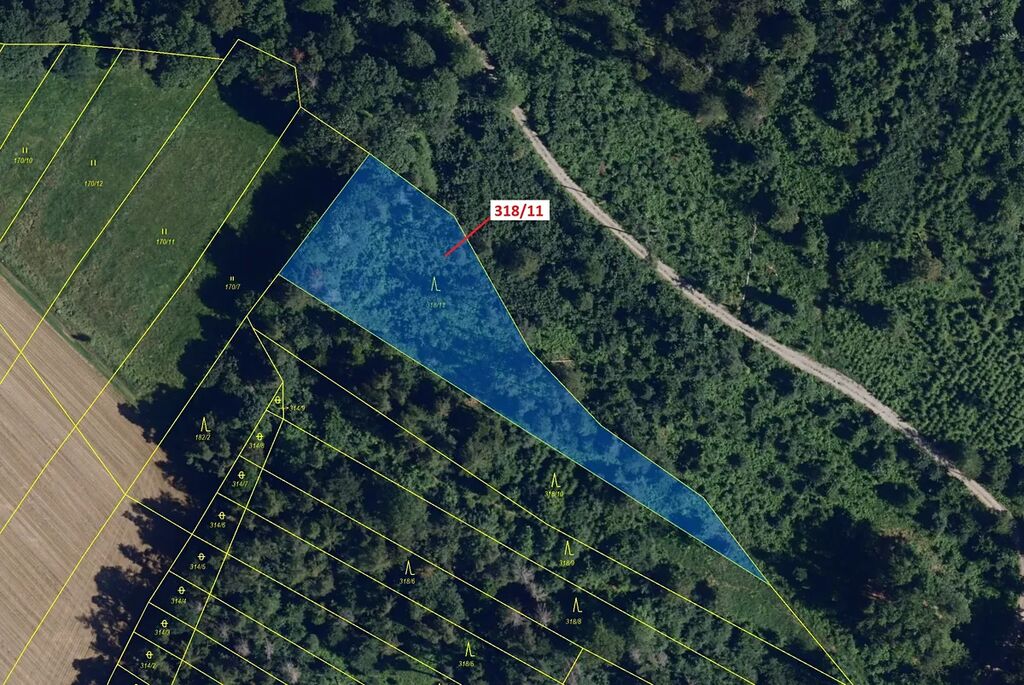Lesní pozemek o výměře 3838 m2, parcelní číslo 318/11, podíl 1/1, katastrální území Lesní Hluboké, obec Lesní Hluboké, obec s rozšířenou působností Rosice, okres Brno-venkov, Jihomoravský kraj. Po těžbě.