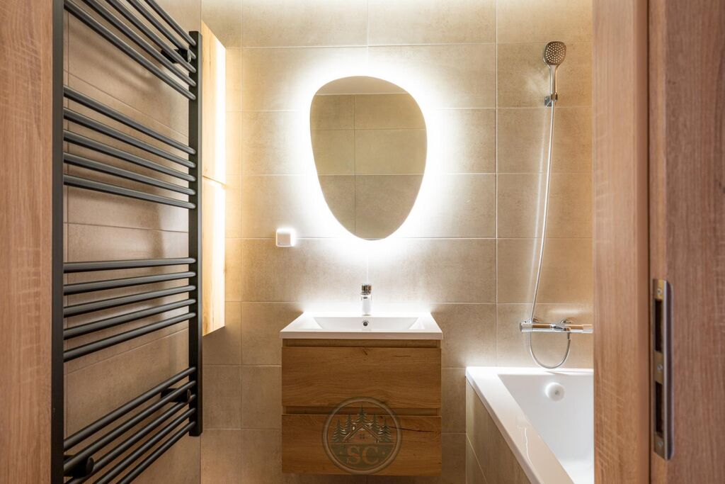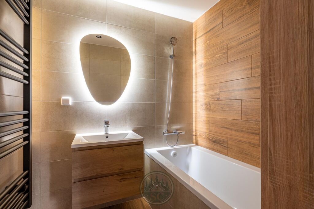 Koupelna je samostatná, s vanou a moderním vybavením. WC je oddělné a má vlastní umývátko.