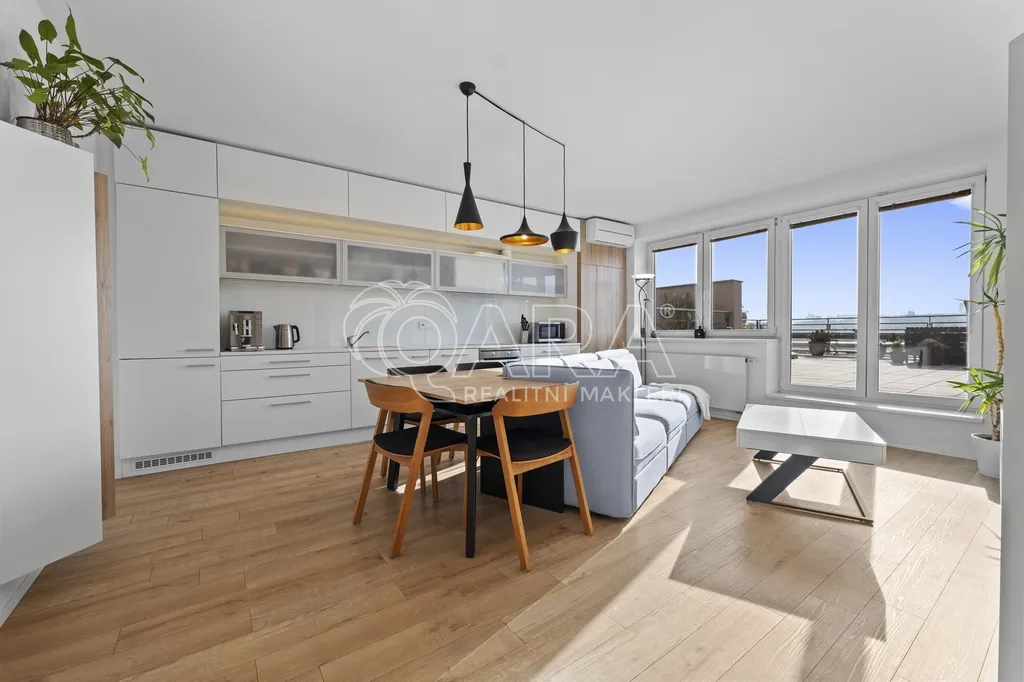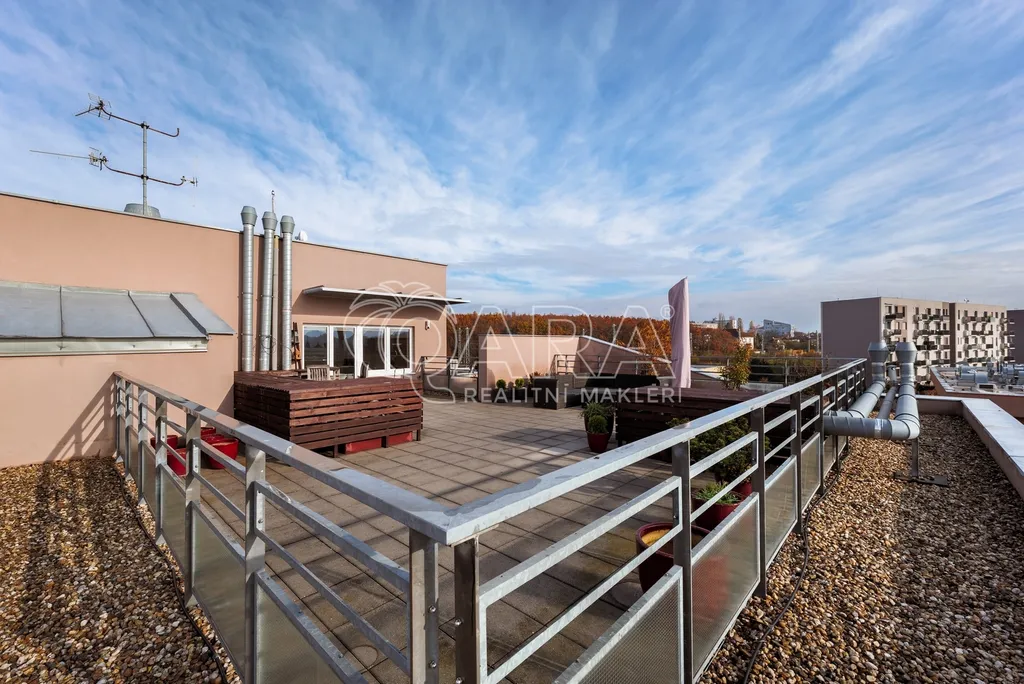 Nabízíme vám pronájem plně vybaveného, prostorného bytu s krásným výhledem a obrovskou terasou o dispozici 3+kk ve velmi žádané lokalitě v ulici Pražská, Praha 15 – Hostivař.