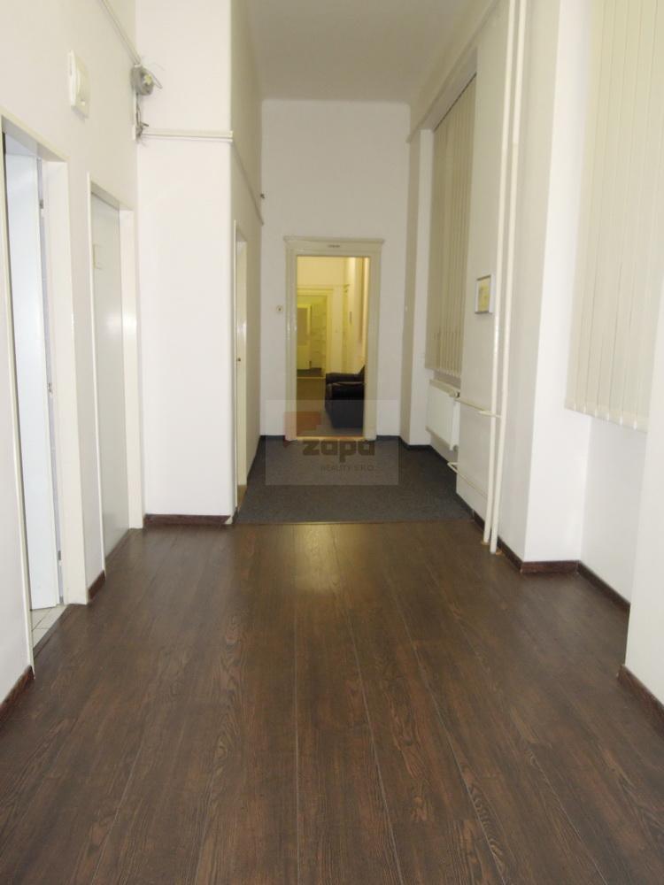 Kancelář je nezařízená s vysokými stropy 3,7 m, výhled z oken je do klidného tichého vnitrobloku.