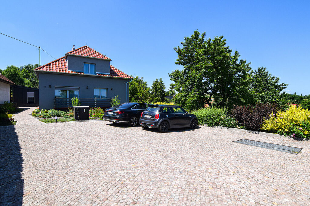 K dispozici je 5 parkovacích stání na vlastním pozemku + další u příjezdové komunikace.