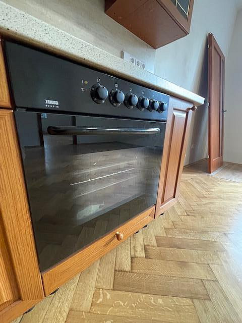 Byt prošel kompletní a nákladnou rekonstrukcí všude jsou krásné zbroušené a nově lakované parkety, dřevěná kuchyň v jednotném dekoru, stejně jako dveře a zárubně. V předsíni je velká vestavěná skříň, která nabízí dostatek úložného prostoru.