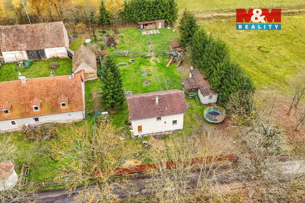 Součástí prodeje je pozemek o výměře 1 774 m² a navazující pronajatý pozemek cca 5 000 m² s ohradou - ideální pro chov koní nebo drobných hospodářských zvířat. Na pozemku se nachází přístřešek pro koně a dřevěná kůlna.