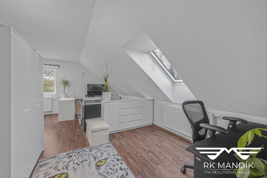 2. nadzemní podlaží tvoří tři prostorné pokoje (28,37 m², 21,56 m² a 25,28 m²), chodba (3,40 m²) a připravený prostor pro vybudování nové koupelny (9,54 m²).