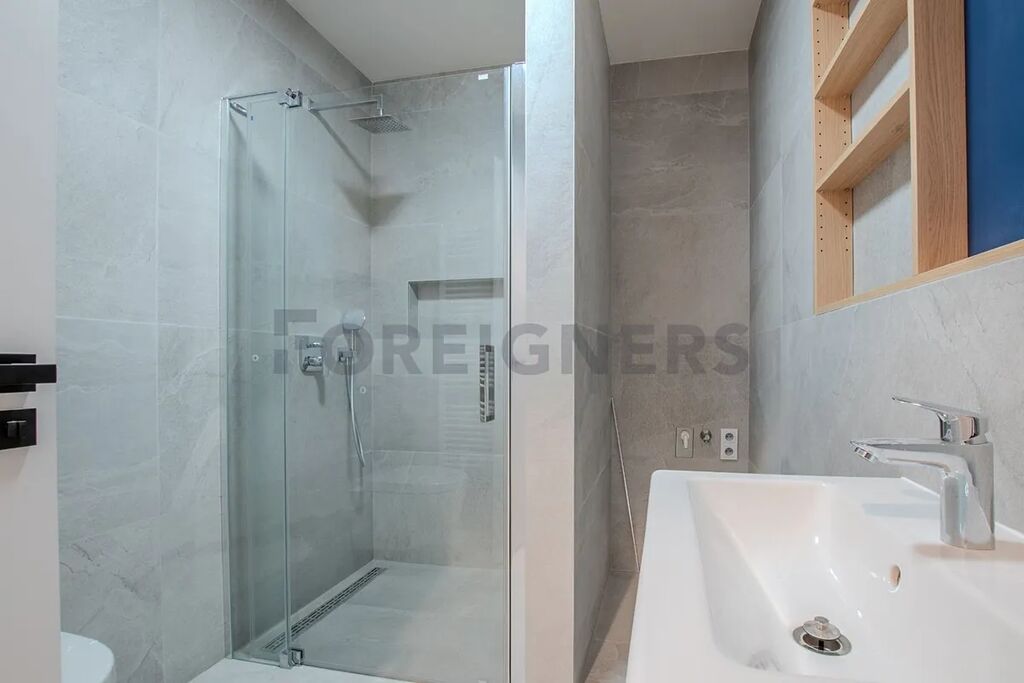 V bytě je instalován systém chytré domácnosti, který umožňuje snadnou automatizaci a ovládání všech prvků – od osvětlení značky Philips přes venkovní žaluzie až po termostat, vytápění (zajištěné tepelným čerpadlem a podlahovým vytápěním) i rekuperaci vzduchu.