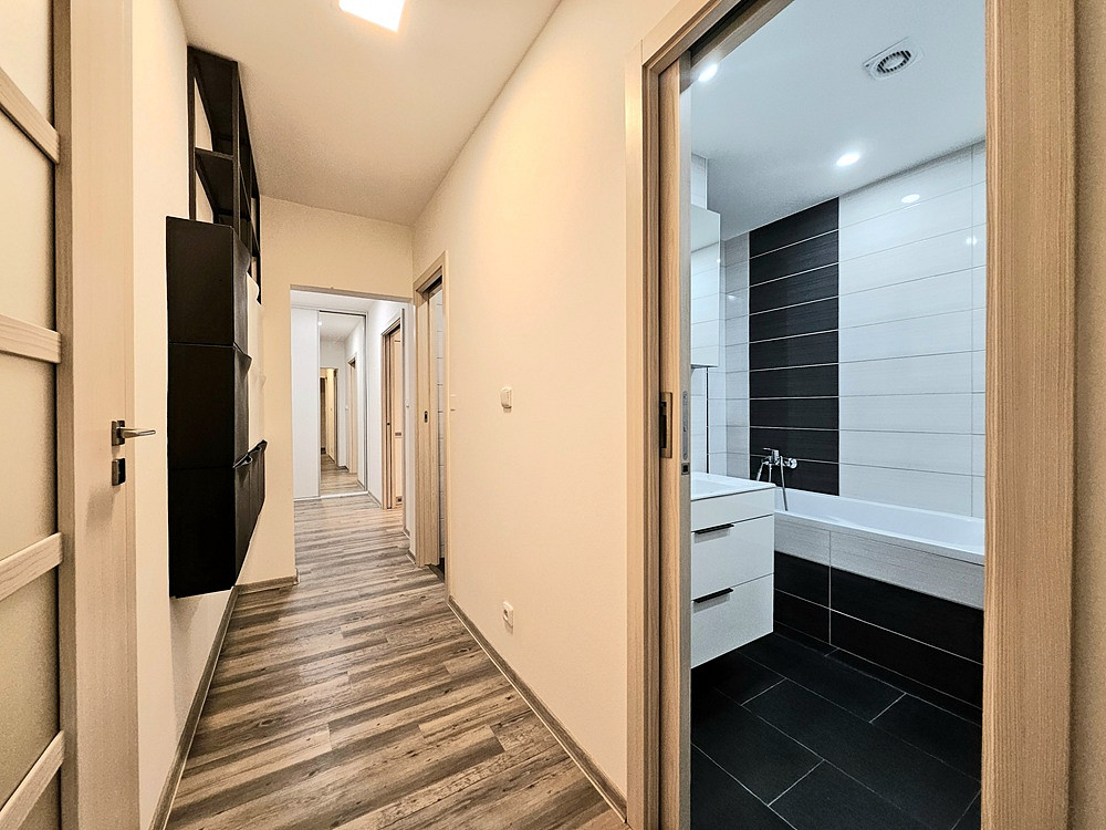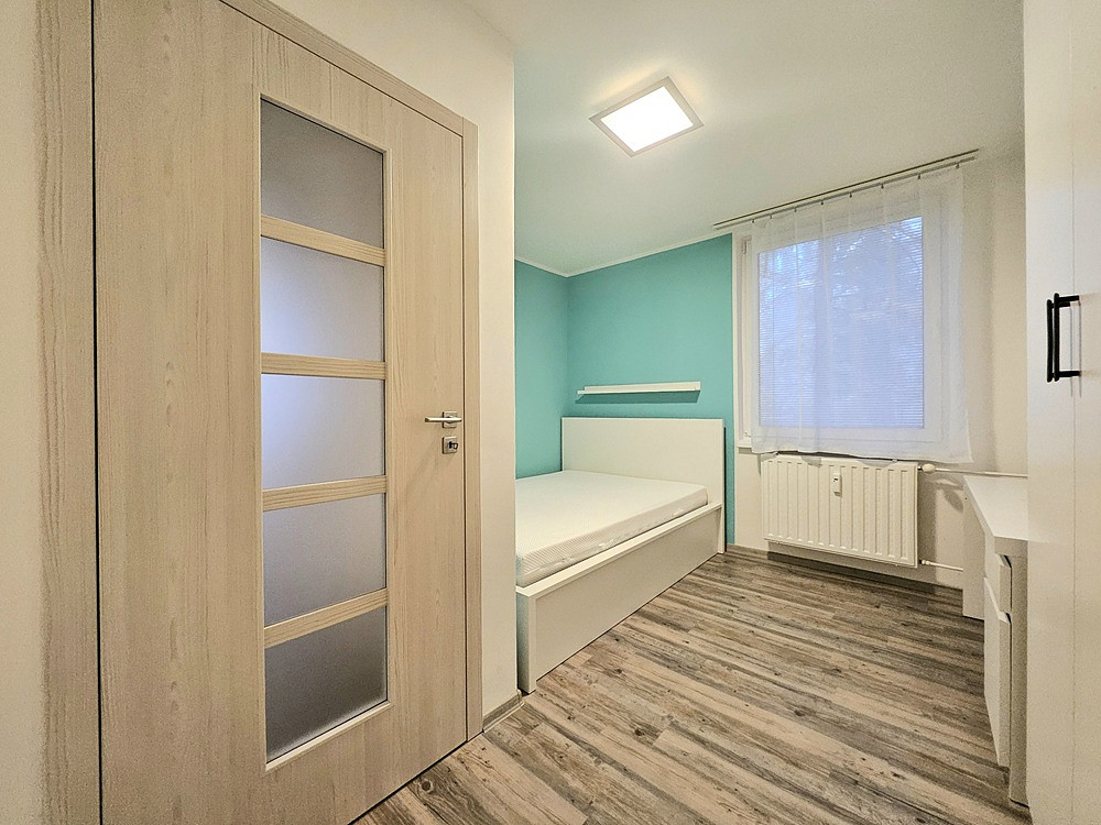 Bytová jednotka se nabízí částečně zařízená, zánovním nábyktem, kuch. linka včetně spotřebičů (lednice s mrazničkou, indukční varná deska, horkovzdušná trouba, digestoř, myčka nádobí, jídelní stůl, skříně v obýváku, policové díly, ve všech pokojích jsou šatní skříně, ve dvou pokojích jsou k dispozici skříňové postele (jednolůžko a dvoujlůžko), ve třetím pokoji dvojlůžko, psací stůl a policové díly (viz. fotografie), koupelnový nábytek, botníky a vestavěné skříně, byt nabízí velké množství úložných prostor, po dohodě lze vystěhovat postele.