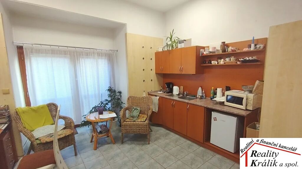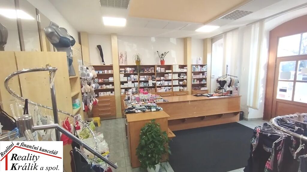 Dispozice: hlavní prodejní prostory o výměře cca 47m2, kancelář s kuchyňskou linkou, sklad, komora, 1x WC s umyvadlem, 1 úklidová komora s WC, koupelna se sprchovým koutem a umyvadlem (celk.výměra 90m2). Ve všech prostorách je položena dlažba. Topení je ústřední plynové s kombinovaným kotlem i na ohřev vody. (Kotel staří cca 2 roky). K prodejně patří podíl ve výši 1/10 na společném dvoře o výměře 421m2. Na dvůr je vstup jak s komory, tak i z kanceláře.