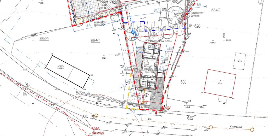 Stavební pozemek se skládá ze dvou pozemků, a to z pozemku parc. č. 684/9 o výměře 40 m2 a z pozemku parc. č. 684/4 o výměře 537 m2, vše je zapsáno na listu vlastnictví č. 560 pro katarální území Kokonín, obec Jablonec nad Nisou. Na pozemku povolena výstavba dvoupodlažního rodinného domu. Pozemky se prodávají s platným stavebním povolením na výstavbu rodinného domu o dispozičním řešení 5+KK o celkové kapacitě 181 m2 vnitřní užitné plochy a cca 60 m2 teras. Dům má navržen 2 nadzemní podlaží a je částečně podsklepen. U domu je navrženo kryté parkovací stání pro 1 automobil.