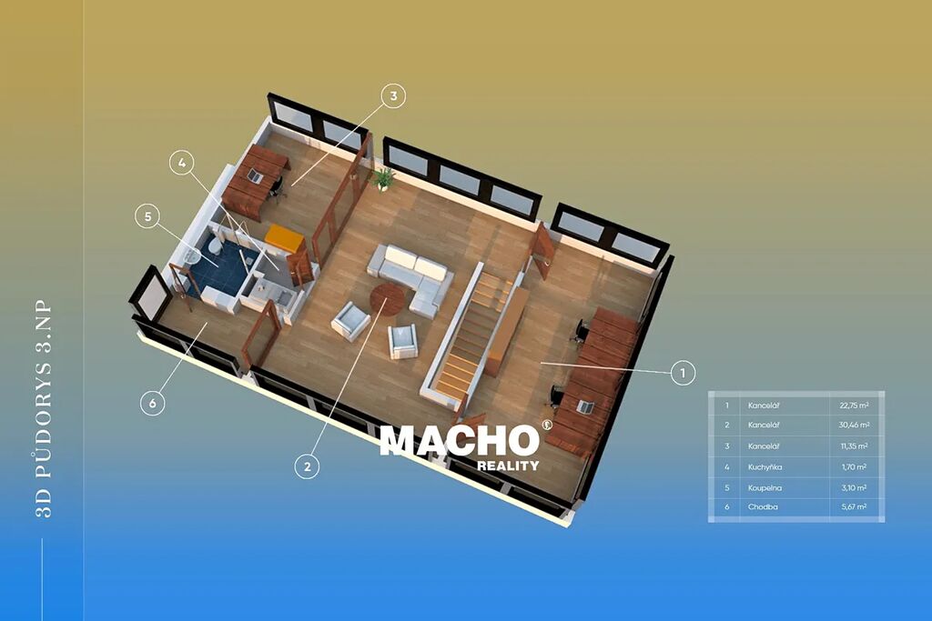 Prostory ve 3.NP se mimo samotné bydlení, nabízí k využití pro podnikatelskou činnost, např. kanceláře, ateliér, ordinaci apod. Je to na vás! Podlaží má vlastní vchod. K dispozici je menší kuchyňka, koupelna se sprchou a toaletou, a tři samostatné místnosti.