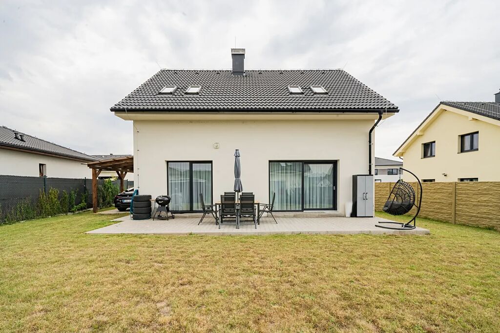 Exkluzivně Vám nabízíme novostavbu cihlového patrového domu na parcele 480 m2 v obci Kounice u Českého Brodu a cca 20 minut od Prahy s užitnou plochou 140 m2. Nachází se na konci obce v klidné části. Dispozice je 4+1 o výměře 98 m2 s terasou 30 m2 (možnost "zimní zahrady"). V přízemí se nachází prostorný obývací pokoj se vstupy na zahradu, krbový kamna, nová kuchyňská linka s vestavěnými spotřebiči, lednice. Dále je zde koupena se sprchovým koutem a toaletou, dvě technické místnosti v jedné je plynový kondenzační kotel (podlahové vytápění), který ohřívá vodu se zásobníkem. V patře jsou tři pokoje, koupelna se sprchovým koutem a samostatná toaleta, výstup na pochozí půdu. Dům je napojen na obecní vodovod, kanalizaci a není podsklepen. Na pozemku parkovací stání pro dvě auta. Obec Kounice se nachází 20 km od Prahy, Český Brod 4,5 km, Úvaly 11 km. Má občanskou vybavenost MŠ, ZŠ, obchod Jednota, hospody, Kounický pivovar, Sladovna Klusáček, pošta, knihovna, tenisové hřiště, Sokol, Zámek Kounice. V tuto chvíli je dům pronajat.
