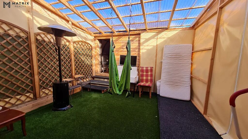 Ateliér o podlahové ploše 49 m2 je rozšířen o celoročně využitelnou zimní zahradu 22 m2, zahrnuje velkou centrální místnost, 2x koupelnu s WC a sprchovými kouty, kuchyňskou linku, dále navazující vstup do zastřešeného, vyhřívaného bazénu se slanou vodou, vířivkou a relaxační zónou (60 m2), fitness zónu (18 m2) a navazující saunu s masážním lehátkem (19 m2) využitelnou i jako samostatnou ložnici. Celková plocha zahrady náležející k atelierů je 244 m2.