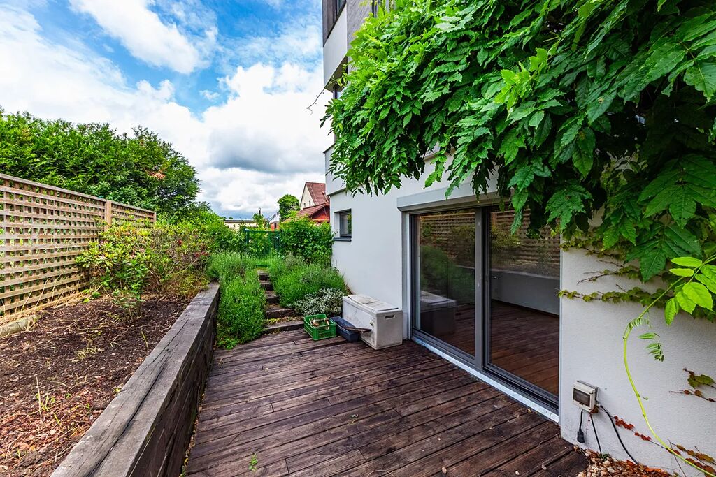 Prodej výjimečného bytu se soukromou zahradou a vyhřívaným bazénem v klidné části Prahy – Dolní Měcholupy.