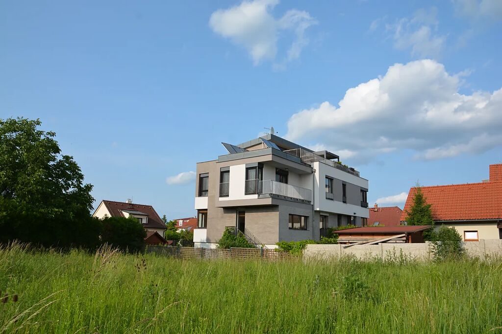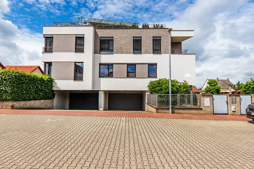 Byt o celkové ploše 124,8 m² se rozkládá ve dvou podlažích moderního viladomu se čtyřmi jednotkami, umístěného v tiché ulici s rodinnými domy. Lokalita nabízí vysoký standard bydlení s důrazem na soukromí a klid.