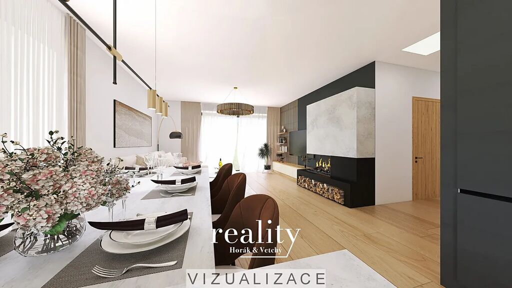 Jedná se o moderní jednopodlažní dům typu bungalov s dispozicí 4+kk o užitné ploše 131m2 + 36m2 garáž pro 2 vozidla. Aktuálně se dům prodává jako hrubá stavba na dokončení, po dohodě s investorem je možné dům dokončit dle níže uvedeného standardu. Vlastní RD je navržen tak, aby svým obyvatelům poskytl kvalitní a úsporné bydlení s dostatkem prostoru. Nízkoenergetický standard zaručí moderní 300mm zdivo s plánovaným kontaktním zateplením z EPS tloušťky 200mm, zateplená podlaha i strop, plastová okna s trojskly a podlahové teplovodní topení s tepelným čerpadlem DeDitrich, ohřívající současně i TUV. K dispozici je i komín k případné instalaci krbových kamen.