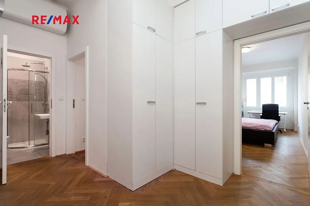 Kuchyně s moderní kuchyňskou linkou, lednicí a barovým sezením. Obývací část a ložnice s okny do klidného vnitrobloku. Koupelna se sprchovým koutem a toaletou, prostorná předsíň. Dřevěné parkety, dlažba. Sklep.