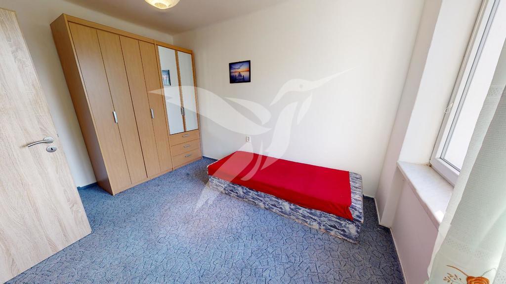 Nemovitost o velikosti 70 m2 se nachází v 2. NP cihlového domu bez výtahu a skládá se z předsíně a chodby, 3x samostatného pokoje, pokoje včetně kuchyňské linky, koupelny, toalety i komory na úložný prostor. Součásti vybavení je kuchyňská linka se spotřebiči (kombinovaný sporák, kombinovaná chladnička), dále jídelní stůl + židle, automatická pračka, šatní skříně. Vytápění zajišťují kamna na tuhá paliva a ohřev vody elektrický bojler.