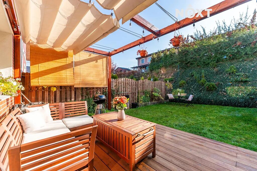 Pozemek o velikosti 203 m² nabízí zahradu o ploše 90 m², kde najdete dřevěnou pergolu a vzrostlou zeleň. Skvělé místo pro odpočinek, grilování či dětské hry. K dispozici jsou také dvě parkovací stání přímo u domu.