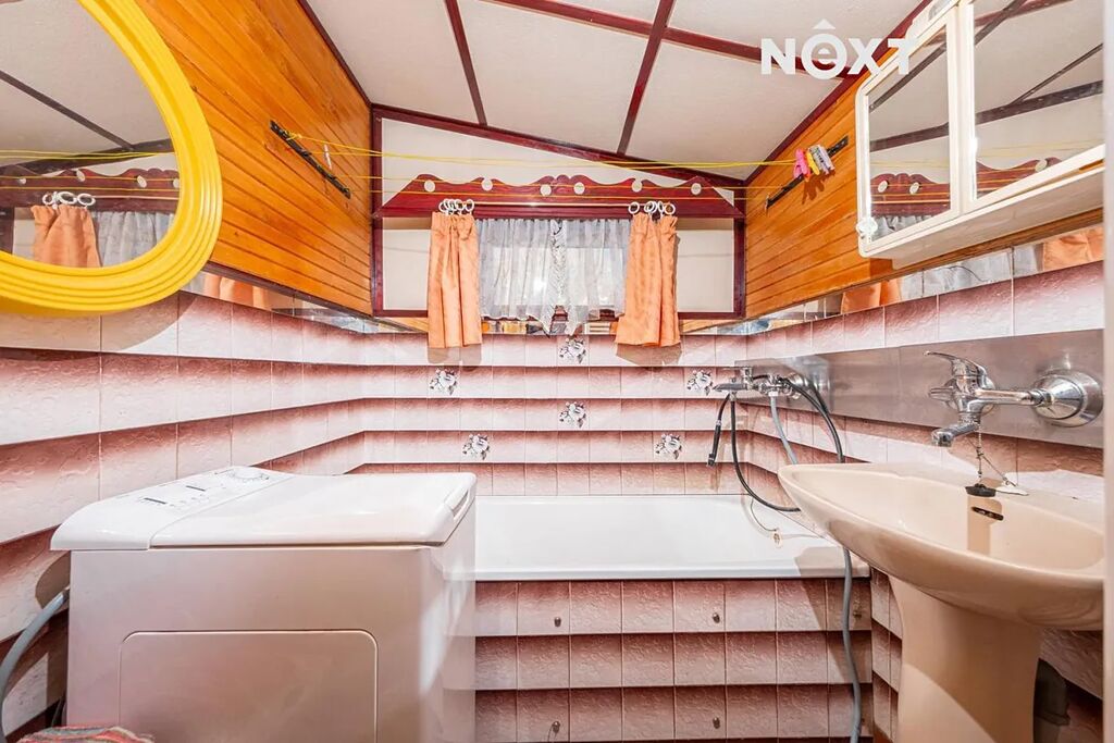 1NP - zádveří, veranda, obývací pokoj, kuchyně, pokoj, koupelna s WC - vana, prostor pro pračku