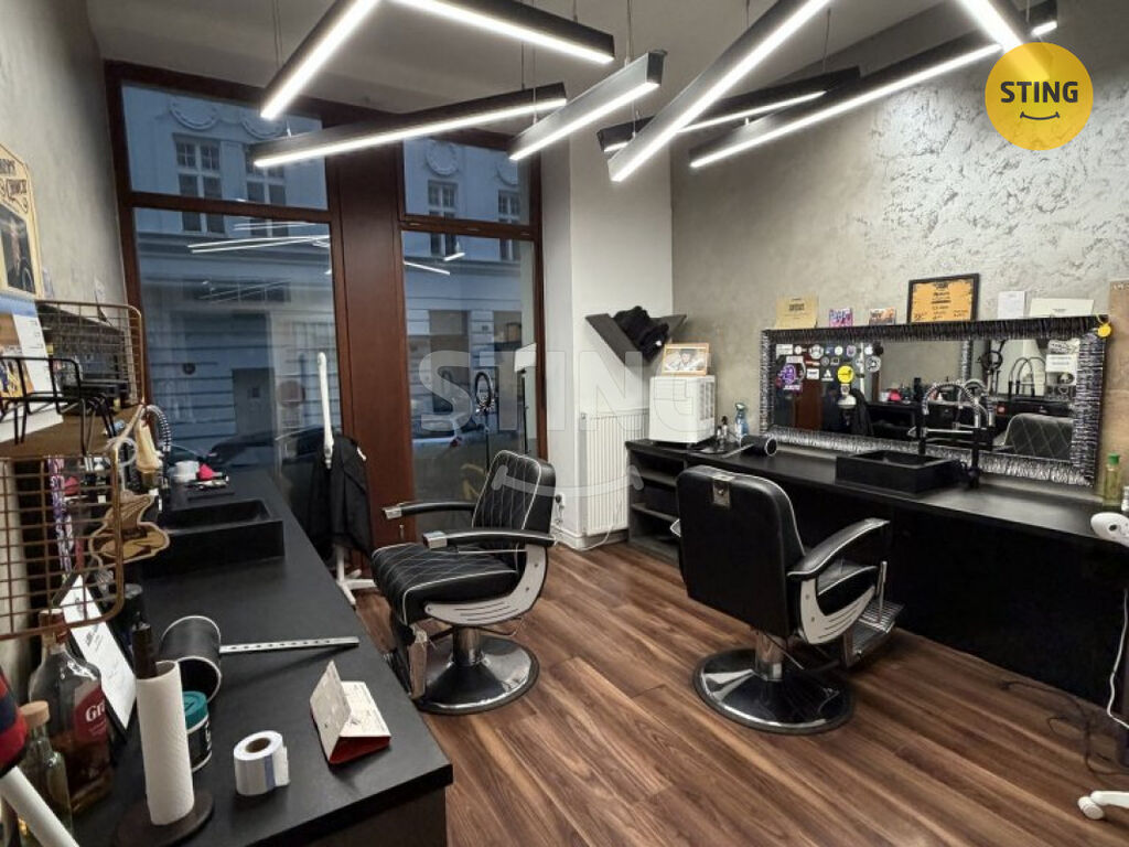 Prostor o velikosti 42,95 m² je vhodný pro služby, kosmetiku, kadeřnictví, barber studio, menší kancelář, showroom nebo ateliér.