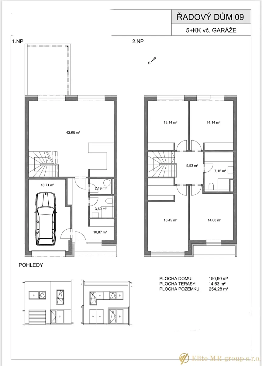 Prodej novostavby rodinného domu 5+kk s užitnou plochou 132 m², terasou 15 m² a garáží 19 m² na pozemku o výměře 254 m². Stav odpovídá fotografiím a půdorys s přesnými rozměry je k dispozici u posledního obrázku.
