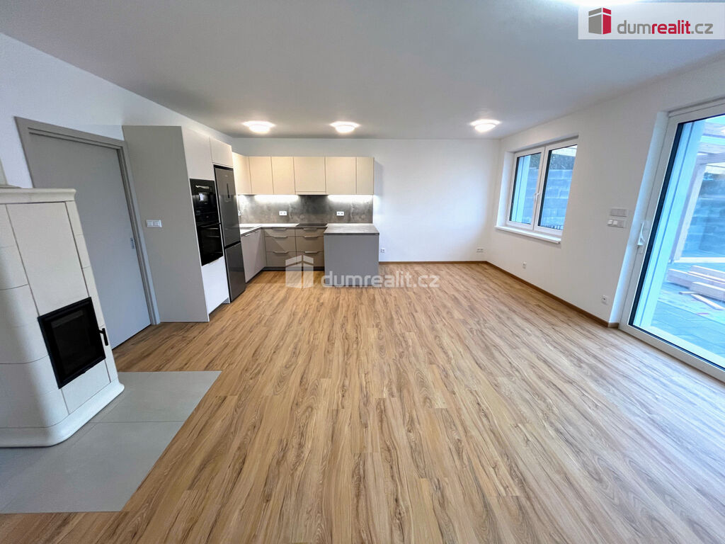 Topení je podlahové, navíc jsou k dispozici krbová kamna. Ohřev teplé vody zajišťuje elektrický bojler. K bytu náleží praktický úložný prostor, velká zastřešená terasa a zahrada. Parkování je bezproblémové, přímo u domu, pro dvě auta.