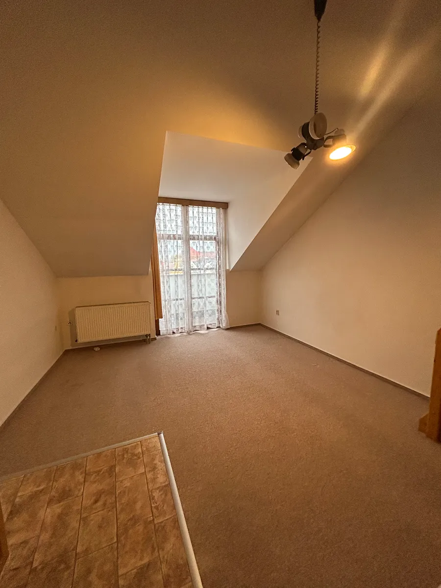 Nabízíme k dlouhodobému pronájmu světlý a prostorný byt (mezonet) o dispozici 2+kk a celkové ploše 45 m², nacházející se ve 3. patře (bez výtahu) obchodního domu Žralok na Resselově náměstí, tedy v samém centru Chrudimi.
