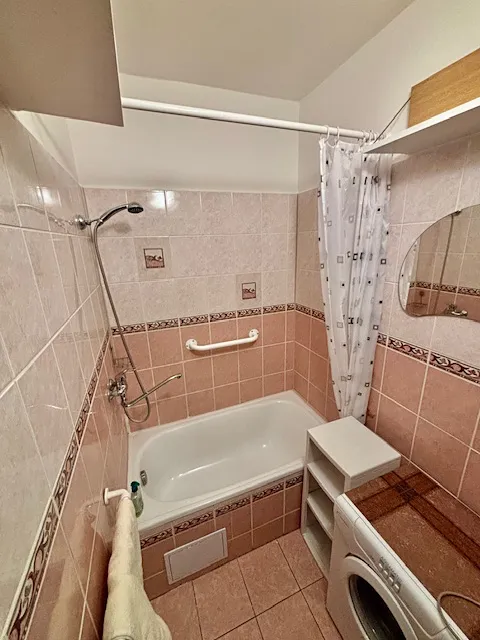 Byt je zařízený vybavenou kuchyňskou linkou, postel, vestavné skříně.