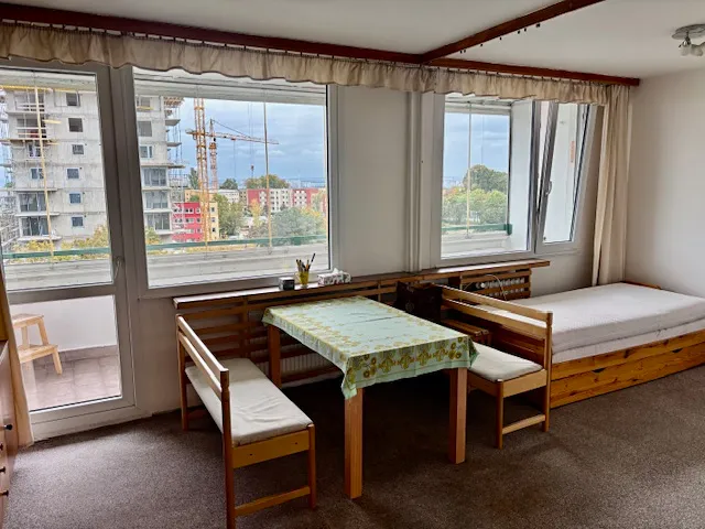Pronájem kompletně zařízeného světlého bytu 1+KK s prostornou lodžíí o výměře 30m2 v panelovém domě na okraji sídliště Prosek.