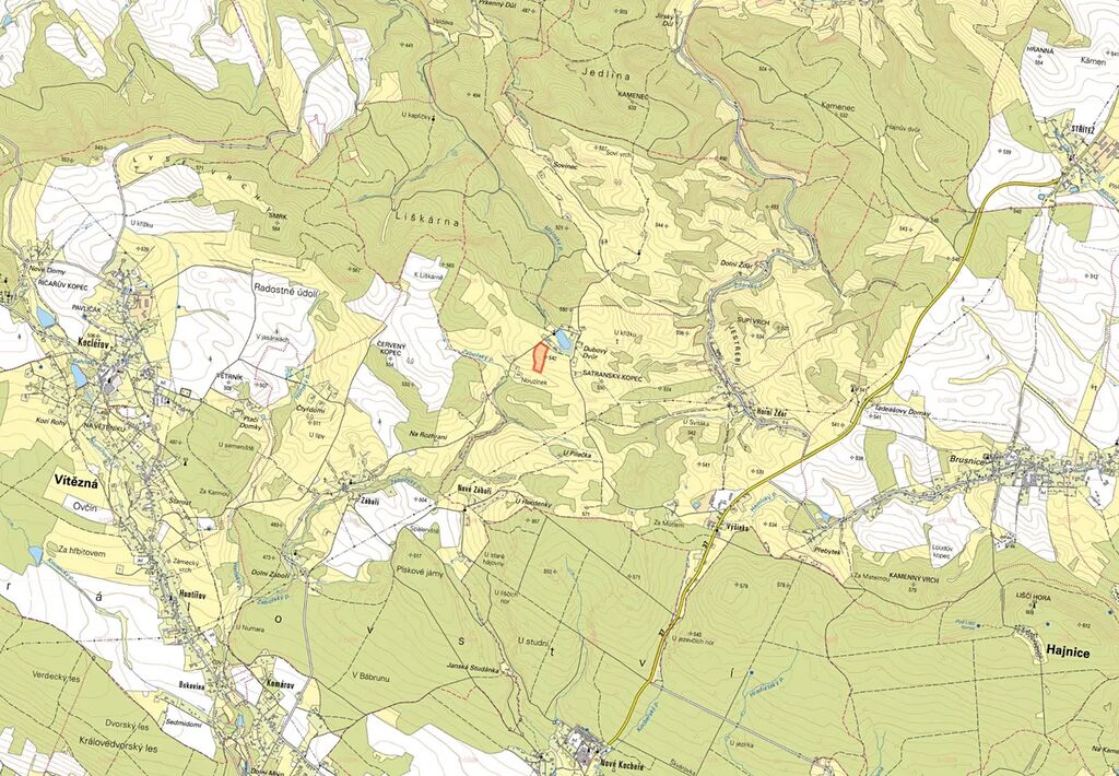 Celková výměra pozemku činí 19 758 m², přičemž k prodeji je podíl odpovídající 4 940 m². Druhové složení: trvalý travní porost v plném rozsahu.