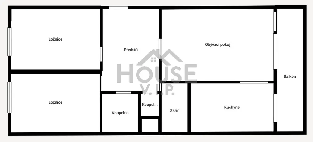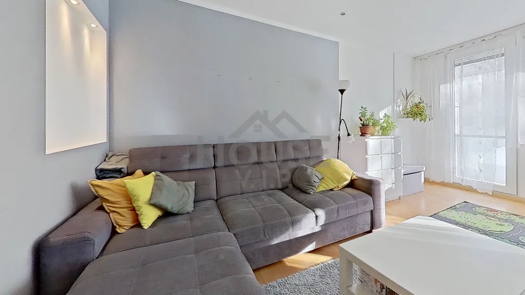Dominantou bytu, umístěného ve druhém podlaží, je světlý obývací pokoj se vstupem na jižně orientovanou lodžii (6 m2), která poskytuje příjemné posezení s výhledem do klidného okolí se zelení a dětskými hřišti. Z obývacího pokoje je vstup do kuchyně s plně vybavenou kuchyňskou linkou do „U“ a s jídelním koutem. Dále je z obýváku vstup do prostorné chodby, ze které se vchází do dvou neprůchozích pokojů, do koupelny s vanou, do praktické komory a na samostatné WC.