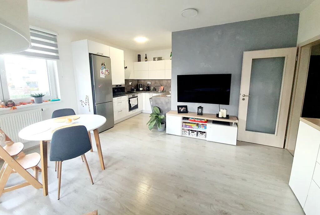 Prostorný byt se dvěma balkóny, sklepem a rozšířeným garážovým stáním, situovaný ve 2.patře novostavby s výtahem v žádané lokalitě pražských Letňan, s dobrou dostupností ke stanici metra C Letňany. Byt sestává ze vstupní haly s vestavěnou šatní skříní, samostatného WC s místem na pračku, koupelny s vanou a WC, ložnice se šatnou, dětského pokoje se vstupem na balkón a obývacího pokoje s kuchyňským koutem a vstupem na balkón. Vybaven může zůstat kuchyňskou linkou s vestavěnými spotřebiči: sklokeramickou varnou deskou, elektrickou troubou, mikrovlnnou troubou a myčkou, dále vestavěnou šatní skříní a vybavenou šatnou v ložnici. Klidné prostředí, byt je světlý, jižně orientovaný. K bytu přísluší prostorný sklep a nadstandardně široké garážové stání.