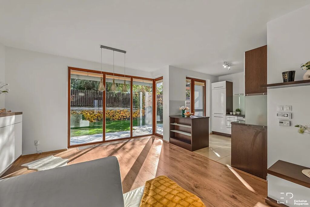 Řadový rodinný dům z roku 2011, součástí bloku 4 řadovek. Sousedí zahradou s dalšími zahradami zástavby rodinných domů. Jihovýchodní orientace. Předokenní žaluzie v OP a ložnici na slunečnou stranu.
