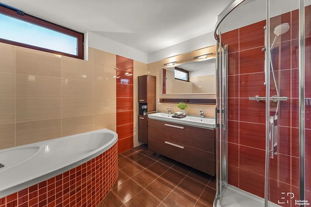 2.NP: chodba, 2 dětské pokoje (nebo dětský pokoj a pracovna), ložnice se šatnou koupelna s vanou, sprchou a místem pro pračku a sušičku, samostatné WC.