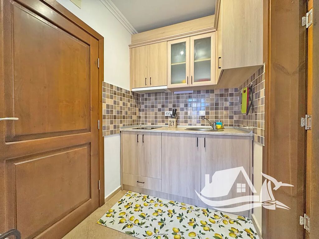 Interiér bytu působí příjemně a harmonicky. Otevřený obývací prostor s kuchyňským koutem nabízí dostatek místa pro pohodlné bydlení i odpočinek, koupelna je zařízena v moderním stylu a celý byt je kompletně vybavený – připravený k okamžitému užívání. Stačí přijet, odemknout a nechat dovnitř proudit mořský vzduch.