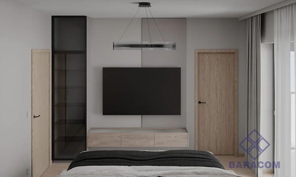 Vinylové podlahy (dekor dub) a interiérové dveře (dekor dub).