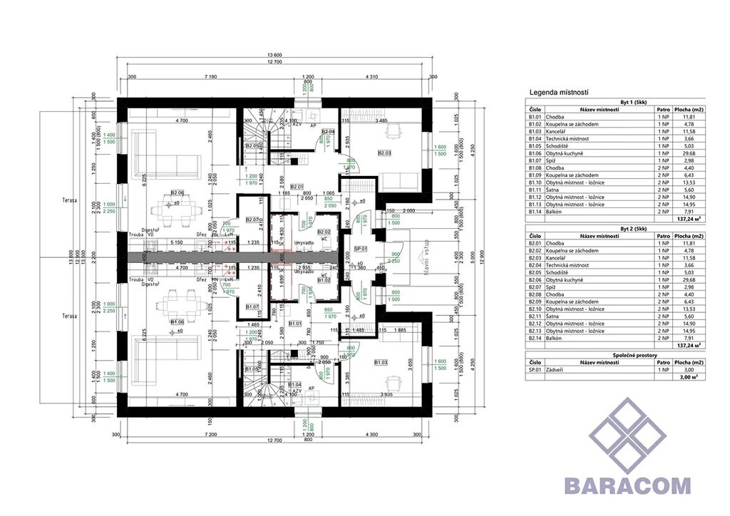 Dům je chytře rozdělen do dvou nadzemních podlaží: