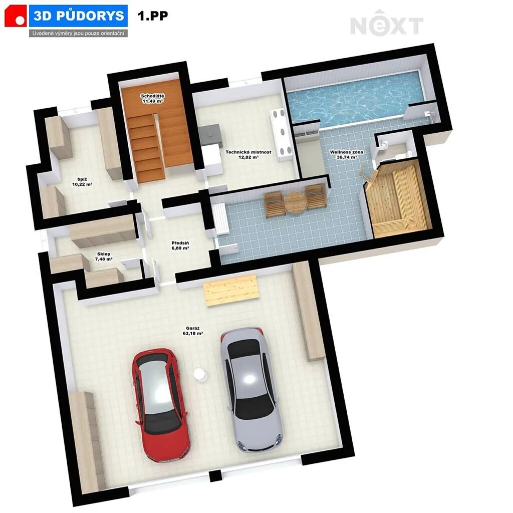 Vila nabízí také velkou garáž pro až 3 osobní vozidla a nadstandardní úložné a technické prostory, které umožňují realizaci osobní fitness zóny nebo dalších funkcí dle vašich potřeb. Dům je centrálně vytápěn plynovým kotlem, v obývacím pokoji se nachází krbová kamna, která dodávají domovu příjemnou atmosféru.