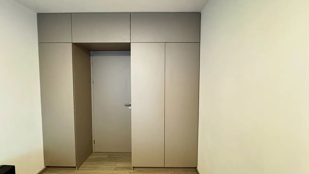 Interiér bytu působí čistě a elegantně – najdete zde novou moderní kuchyňskou linku s vestavěnými spotřebiči, velkou vestavěnou skříň v ložnici a praktickou předsíňovou stěnu s další vestavěnou skříní v chodbě. Byt je tak velmi prakticky řešený a nabízí dostatek úložného prostoru.