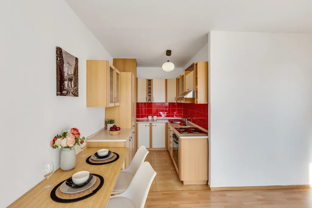 A teď pár slov k lokalitě. Nacházíme se v jednom z nejznámějších pražských sídlišť v Bohnicích, které jsou oblíbené díky své zeleni a skvělé dopravní dostupnosti. Přímo před domem je zastávka autobusu Sídliště Bohnice, odkud jste do 10 minut na metru C Kobylisy. V okolí najdete vše, co ke každodennímu fungování potřebujete, obchody, kavárny, restaurace nebo obchodní centrum Krakov. Kousek od domu se nachází Bohnický park, ideální místo pro procházky a sportovní aktivity, a také nedaleké cyklostezky podél řeky Vltavy.