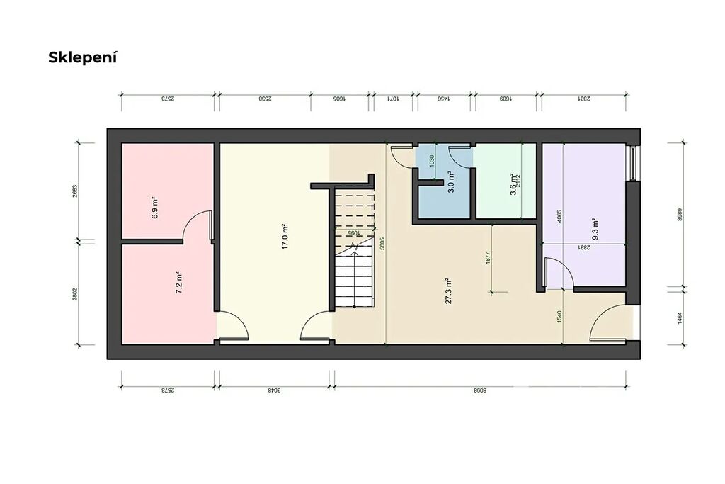 Celý dům je podsklepený a pod domem se nachází 74,17 m² úložných a skladovacích prostor. Sklepy jsou přístupné přímo z garáže i ze zahrady.