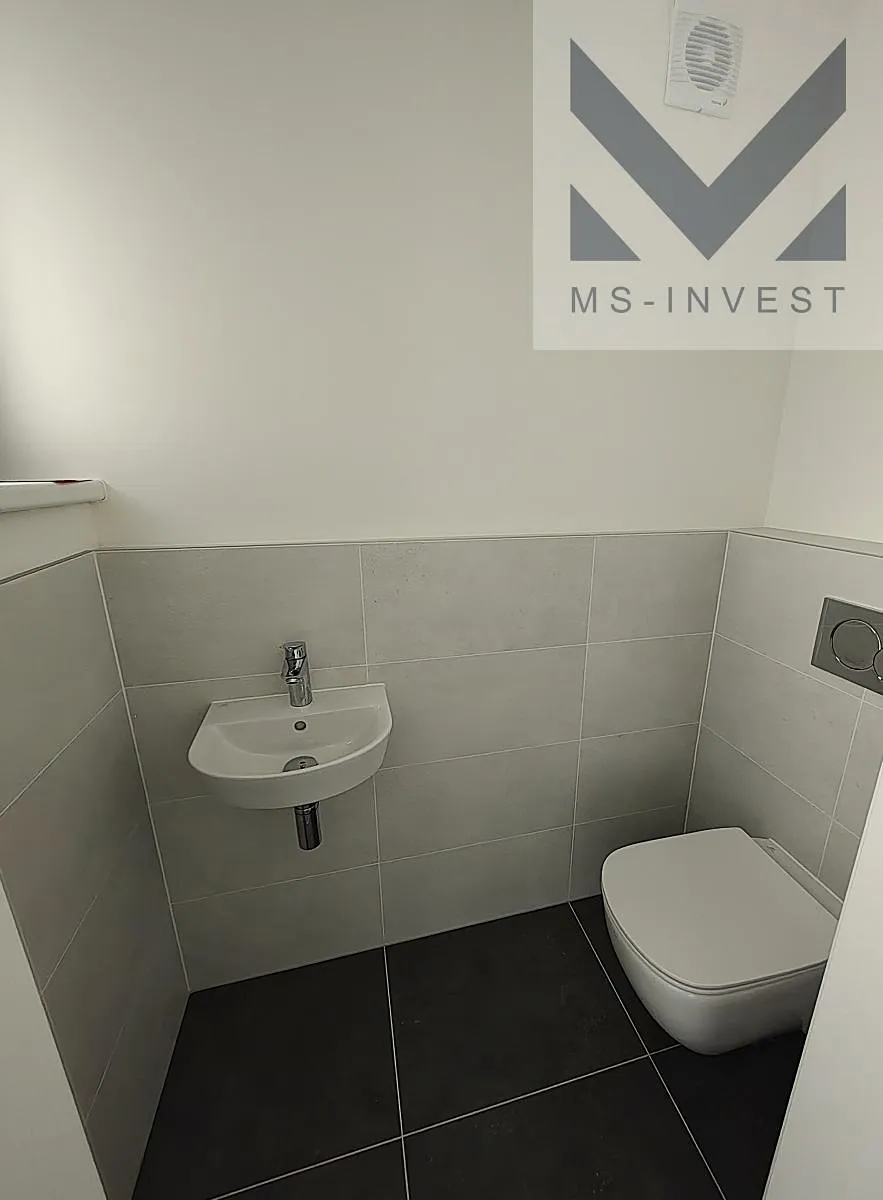 Nabízený krajní dům D-5 velikosti 5+kk a celkové podlahové ploše 144 m2 disponuje v 1. NP vlastní garáží, šatnou, komorou, toaletou, prostorným obývací pokojem s kuchyňským koutem o ploše 37 m2 a navazující terasou propojující dům se zahradou. Zahrada je orientována na západ, sousedí se zahradami stávajících rodinných domů. Ve 2. NP se nachází hlavní ložnice o ploše 17 m2, včetně samostatné koupelny se sprchovým koutem se vstupem přímo z ložnice, dále 2 další ložnice, pracovna, další koupelna s vanou a samostatné WC spojené s technickou místností. V ceně domu je instalovaná kvalitní německá kuchyňská linka zn. Nolte, se spotřebiči zn. Siemens. Pozemek tohoto domu má velikost 302 m2 a jde o jeden z větších pozemků v projektu. Kromě vlastní garáže je možné parkovat další auto na vlastním pozemku před domem. V ceně domu je mimo jiné fotovoltaika s bateriovým úložištěm a napojením do distribuční soustavy a dálkově ovládané hliníkové předokenní žaluzie na všech oknech. Fota interiéru domu jsou z tohoto domu, který je již možné navštívit.